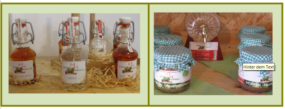 Eigene Produkte: Bio- Haselnuß, Nußlikör, Haselnußmuß, Haselnußöl, Haselnußnudeln,